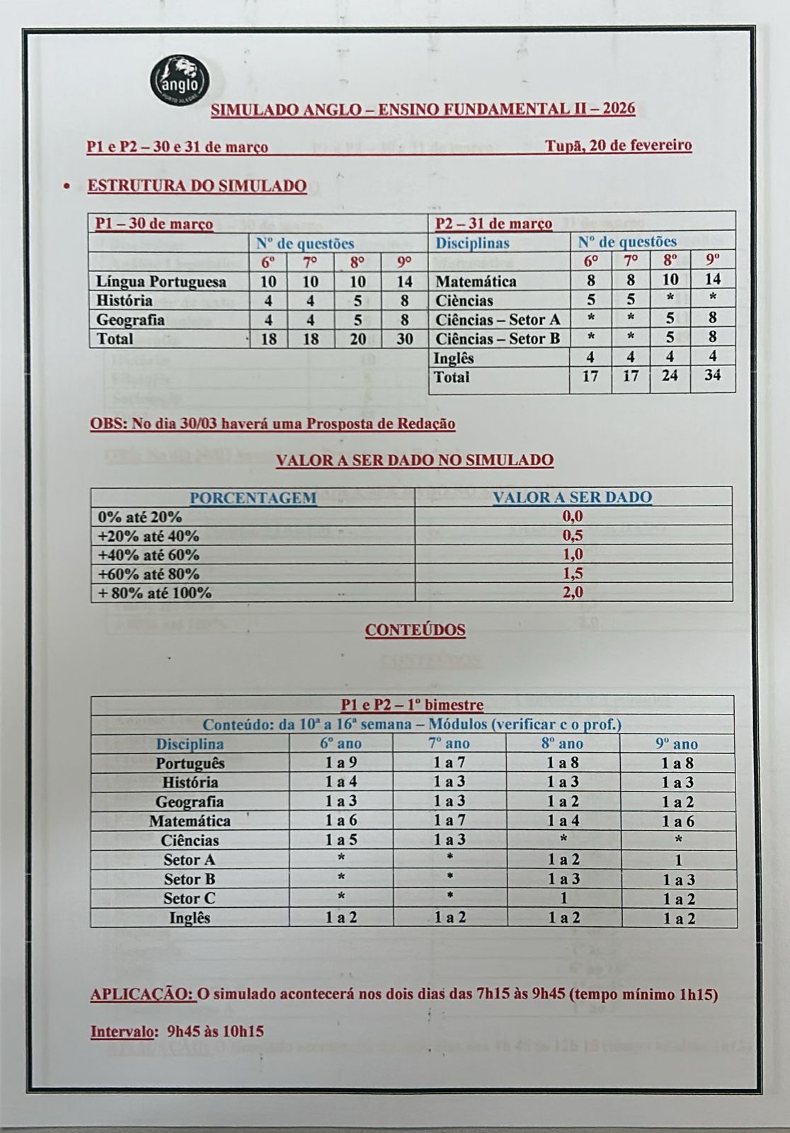| 31/março | P2 | |