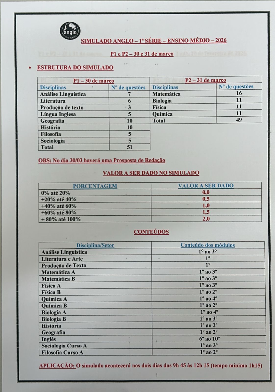 | 30/março | P1 | |